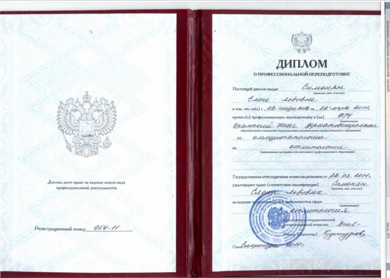 В 2016 году окончила курсы повышения квалификации по Дерматовенерологии и Косметологии.